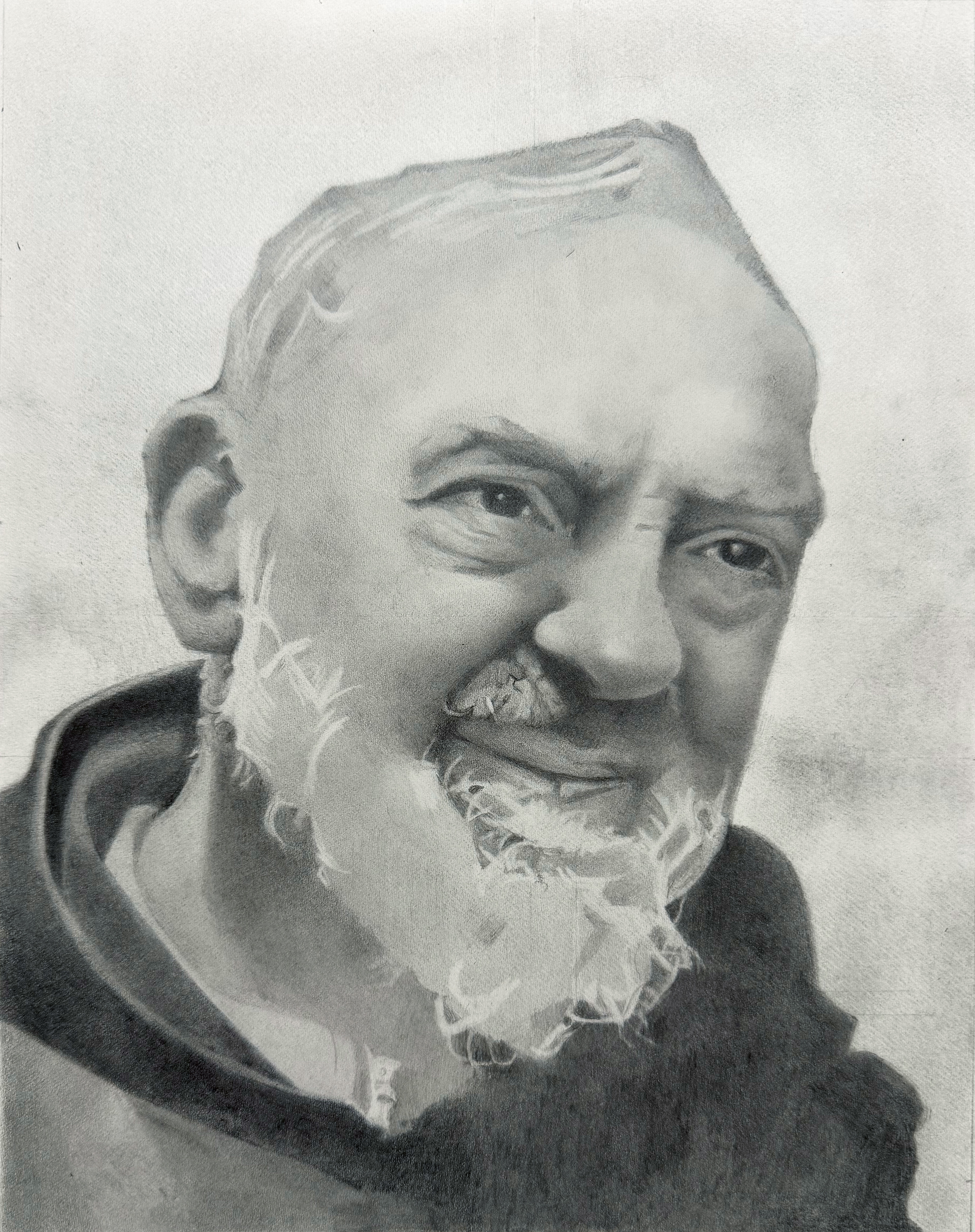Padre Pio, 10.5x8", graphite on paper, 2025
